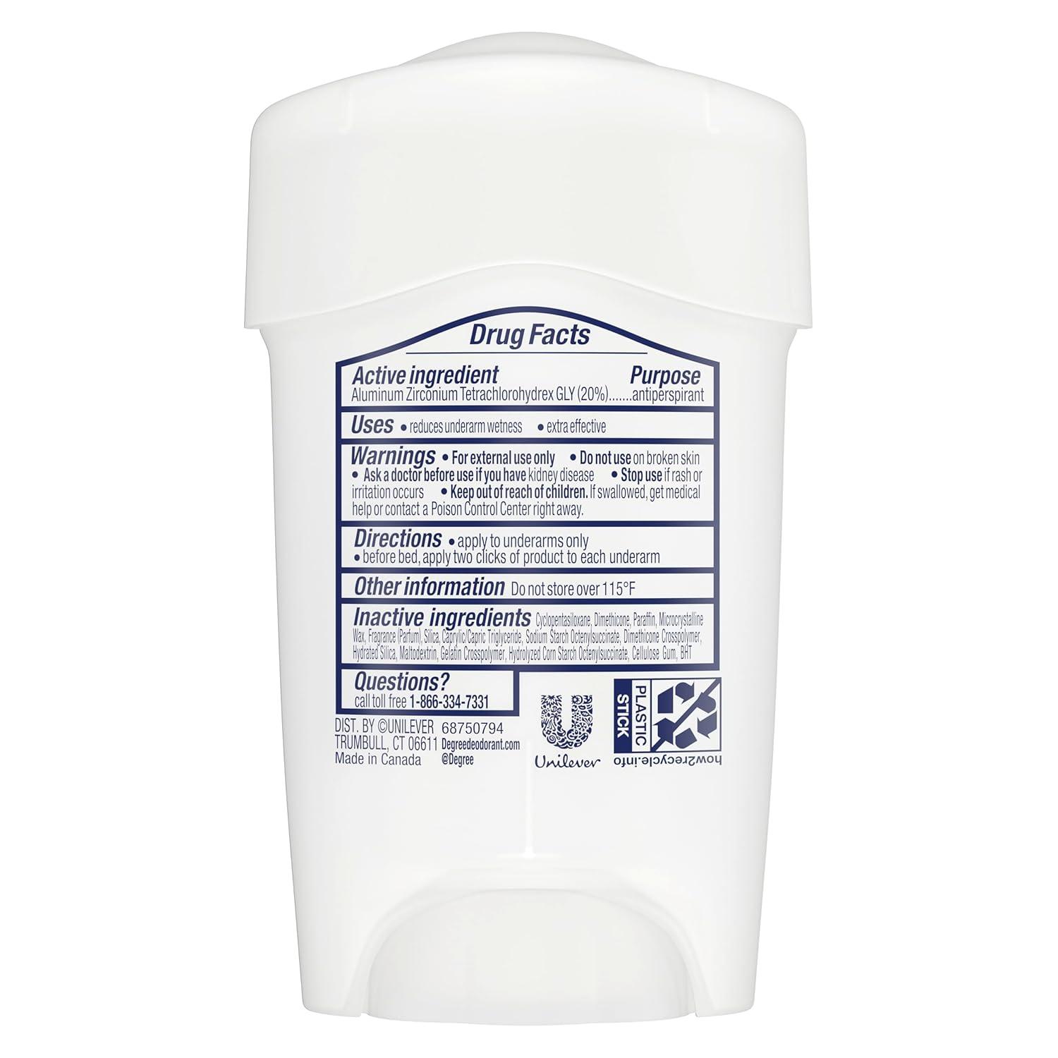 Degree Clinical Protection Shower Clean Antiperspirant Deodorant delivers prescription-strength wetness protection, so you can face the day with confidence. This antiperspirant for women features 72-hour sweat and odor protection and the bright floral scent of rose and jasmine, blended with delicate fruit for an invigorating, clean feeling. Only Degree has MotionSense technology that moves in sync with your body. This clinical strength antiperspirant deodorant releases a burst of subtle fragrance every time you move, for nonstop protection. Degree Clinical Protection Shower Clean Antiperspirant Deodorant keeps you feeling fresher, drier, and more confident. This powerful antiperspirant deodorant responds when you need it most so that you don't have to worry about slowing down. Simply swipe and start moving. This antiperspirant deodorant for women with a tantalizing scent gives you the confidence to keep moving all day long. Degree Clinical Protection Shower Clean Antiperspirant Deodorant keeps you feeling cool, fresh and protected from sweat and odor. Degree gives you the confidence to keep moving, however you move. At Degree, we want to inspire the confidence in everyone to move more and go further. We’re here to support  your journey through an antiperspirant that moves with you and helps you go beyond your limits. As well as increasing our use of reusable materials, we’re making it easier for you to recycle our antiperspirant and dry spray packaging. Degree. It won’t let you down.