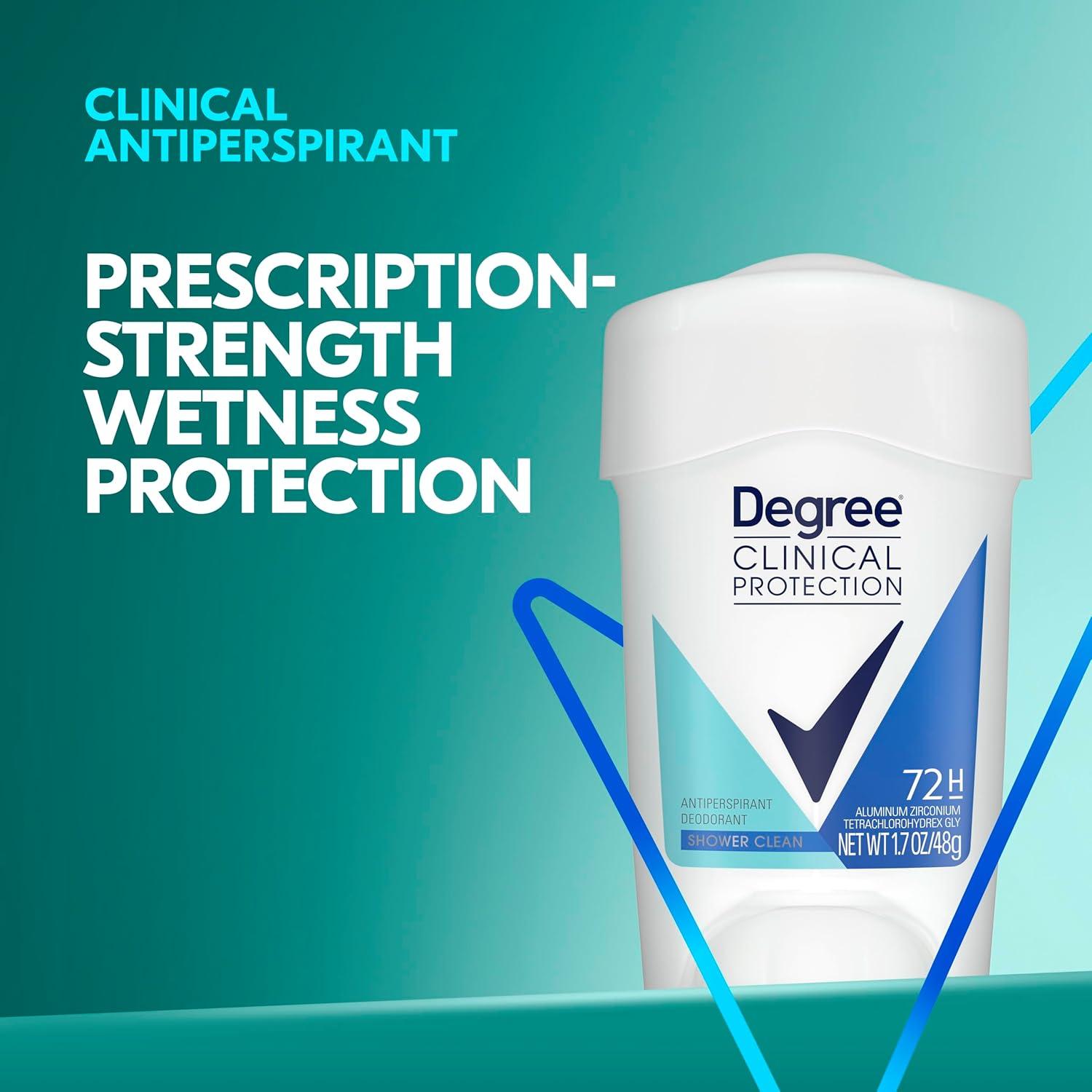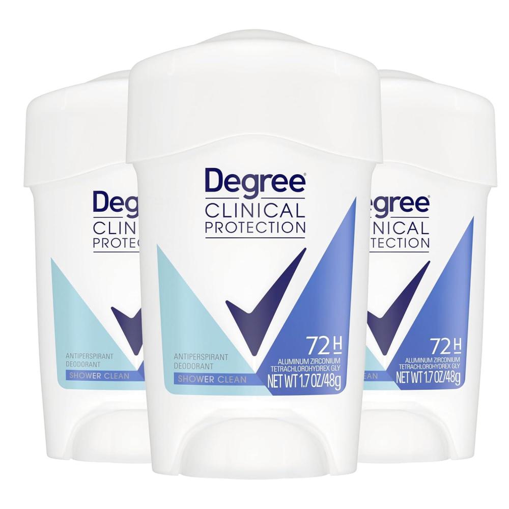 Degree Clinical Protection Antiperspirant Deodorant for Women Shower Clean 3 Pack 72-Hour Sweat & Odor Protection 1.7 oz
