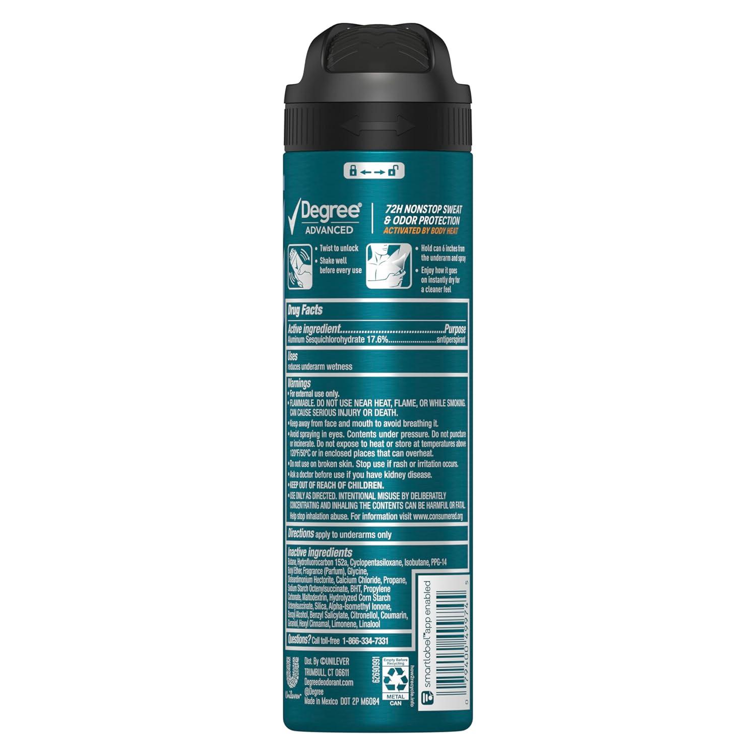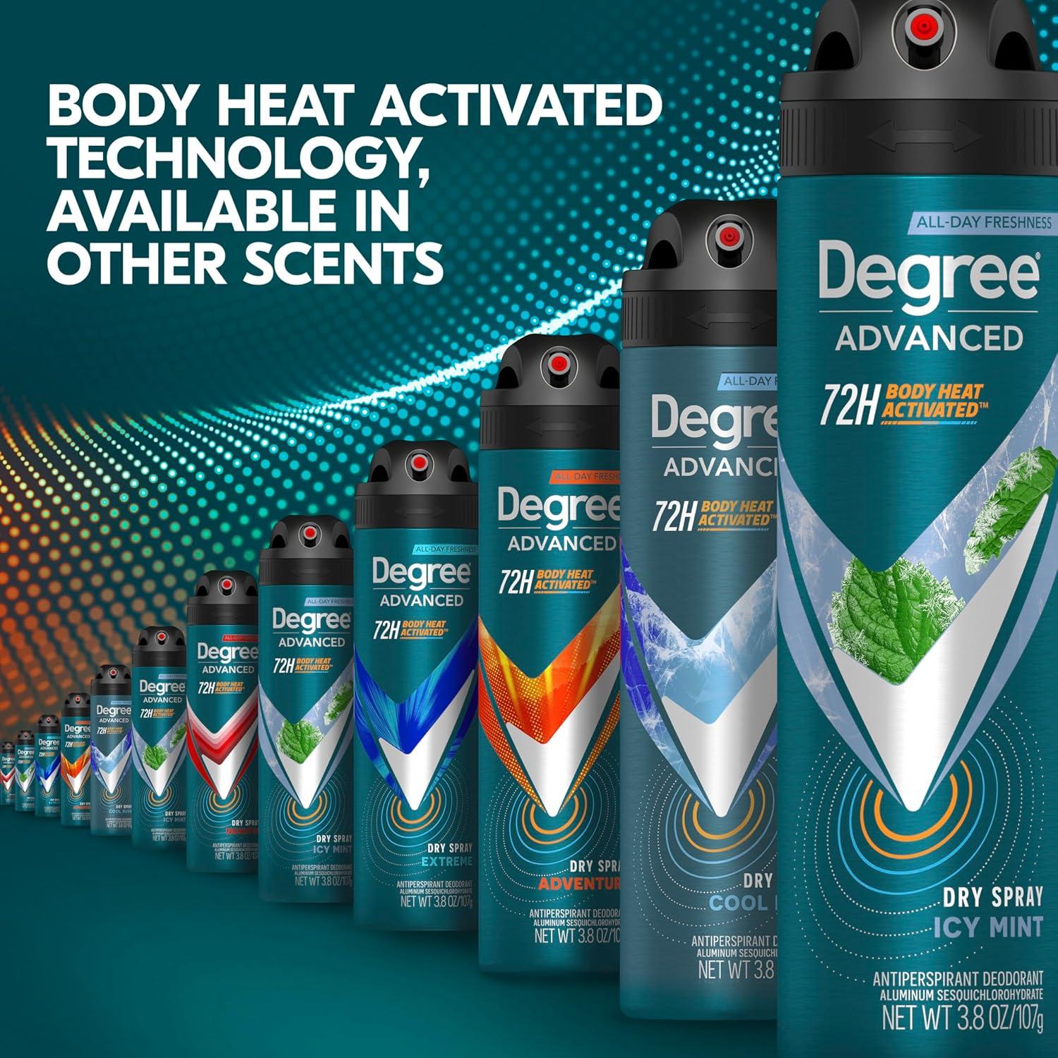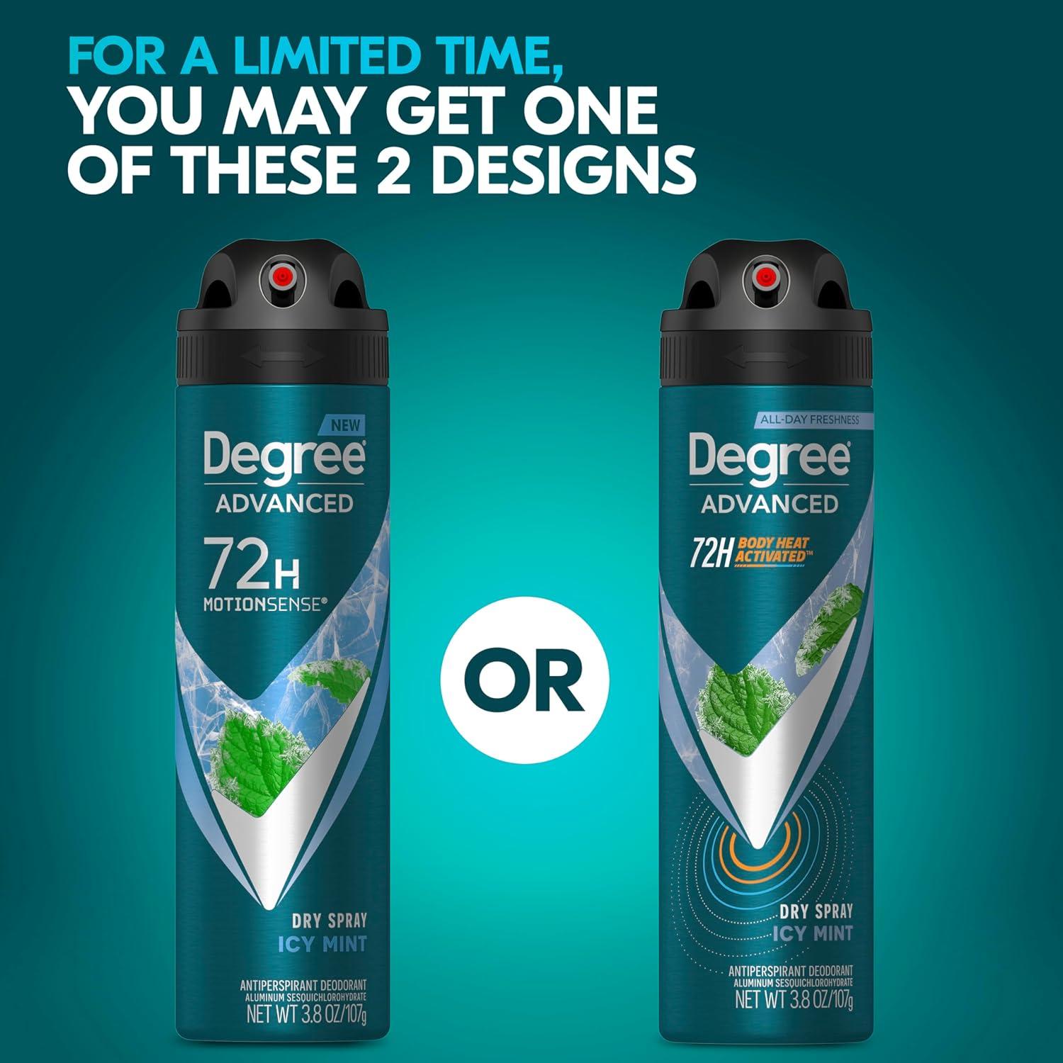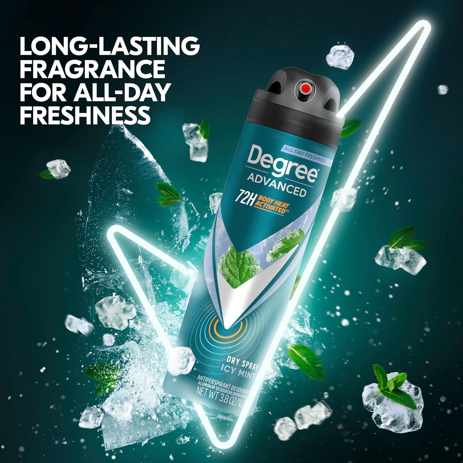 Degree Men Antiperspirant Deodorant Dry Spray Icy Mint 72-Hour Sweat and Odor Protection Deodorant For Men With Body Heat Activated Technology 3.8 oz